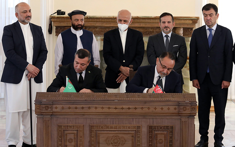 The agreement, which was signed in conjunction with a Turkmen company named Chalak Private Company, was sealed at a ceremony at the Presidential Palace in Kabul on September 30, 2020 and attended by Afghan President Ashraf Ghani.